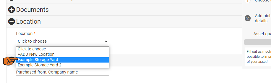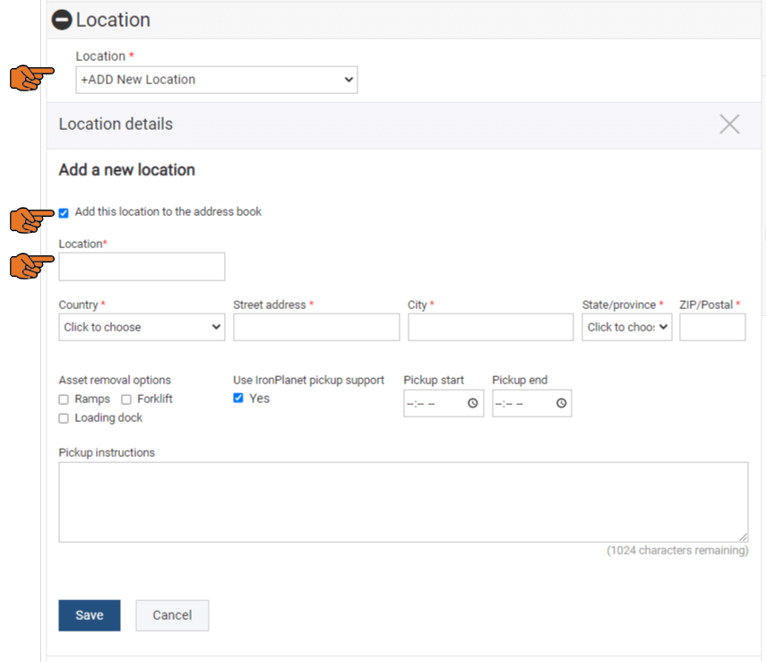 - You can also save a location from the dropdown list. Simply choose the Add New Location option and then select the checkbox to add this location to the address book. This will add the Location field to the address you've entered. This field is needed to determine how this address will appear in the dropdown list the next time you add, edit or workflow an asset.