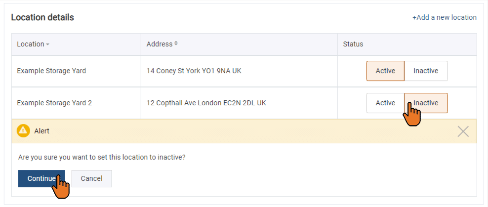 - If you no longer want a location to appear in the dropdown, return to the manage location screen and set the location to inactive.