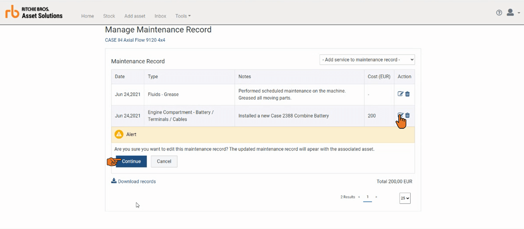 Some users may not have permission to add or edit maintenance records. Those users will be able to view and download the maintenance records from the bottom of the asset detail page.