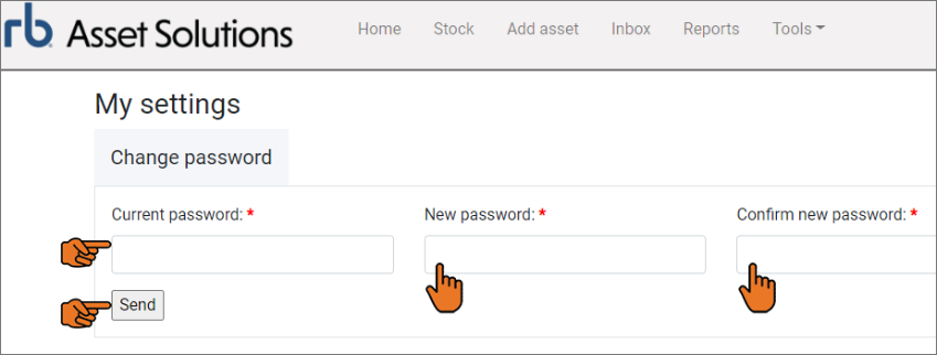 You will be required to enter your current password then create and confirm a new password before clicking the Send button.